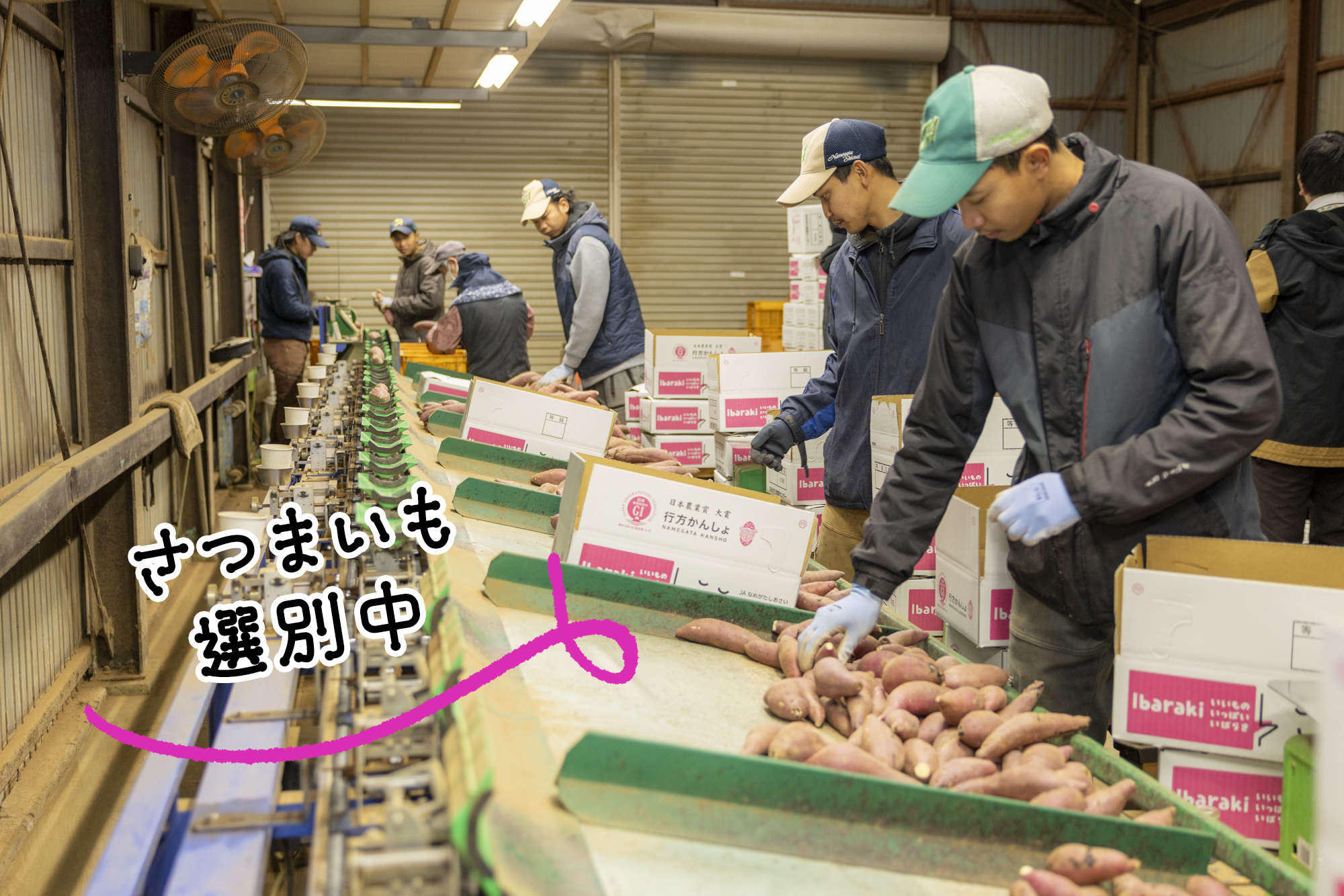 取材の際に出荷されていた紅優甘(紅はるか)のシーズンは8月~2月、紅まさりは2月~6月、そして紅こがねが9月~4月、熟成紅こがねが5月~8月、行方の紫福(しふく)[品種名:ふくむらさき]が1月~4月、そして2025年に新たにブランドへ加わった行方の黄福(こうふく)[品種名:栗かぐや]が6月~8月の出荷目安です。