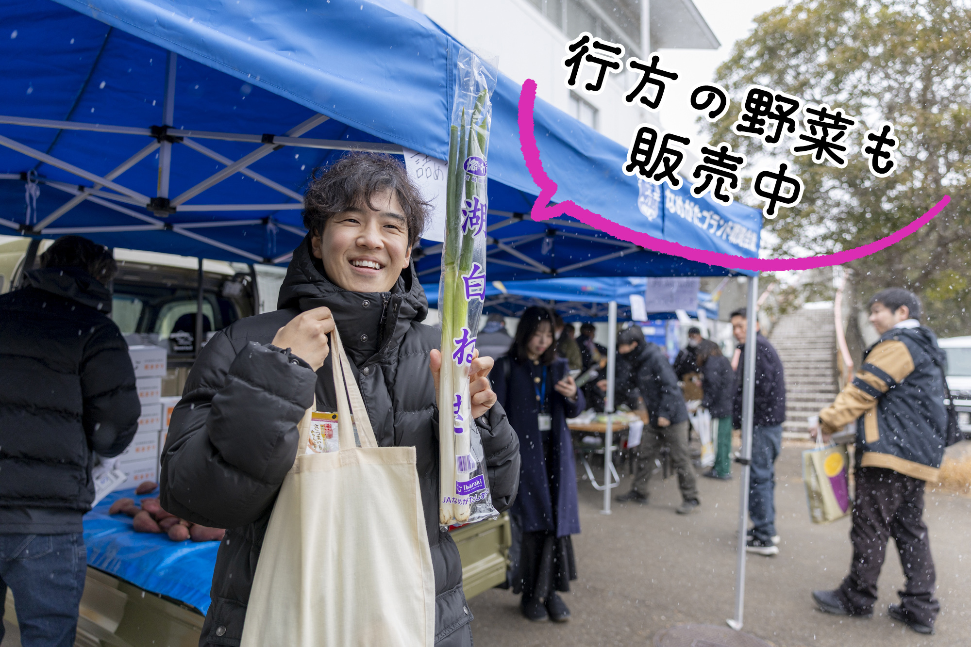 雪が降るあいにくの空模様でしたが、寒い日に嬉しい焼き芋と、とってもお得な野菜セット、そして「紅まさり」の詰め放題を行っていました。