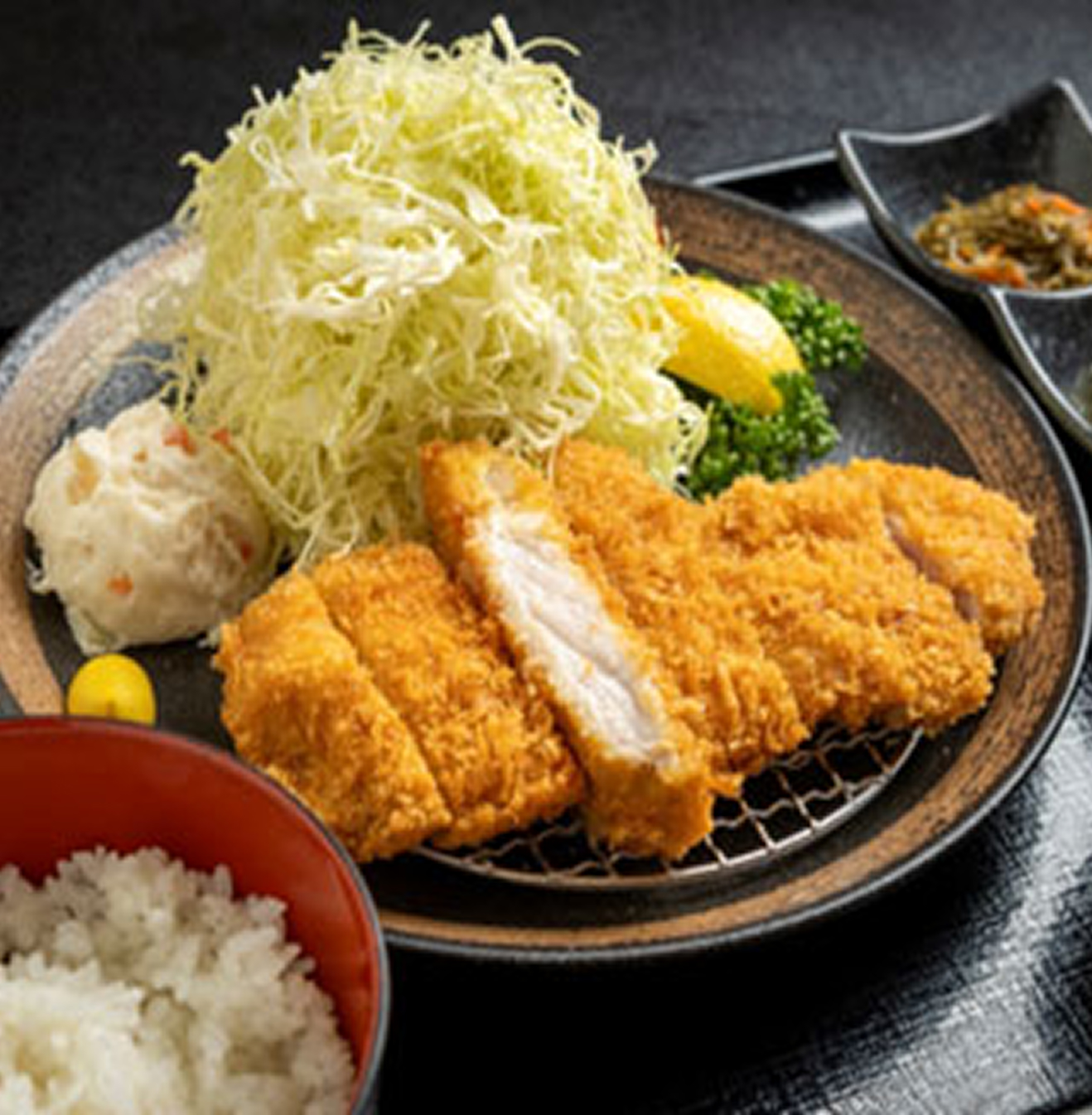 数々の豚肉を扱ってきたマスターに、常陸の輝きの魅力を伺うと「とっても美味しい豚肉ですよ。とにかく脂の質が違います!」と太鼓判を捺します。そんな常陸の輝きを使ったロースかつは、まずはシンプルに塩で味わってみてください。とんでは下味をつけずに植物性オイルであっさりと揚げているので、常陸の輝き本来の味わいをダイレクトに感じることが出来ます。常陸の輝き特有の上質な脂は口当たりも良く、さっぱりとした後味で食後の余韻まで幸せになれること間違いなしです。