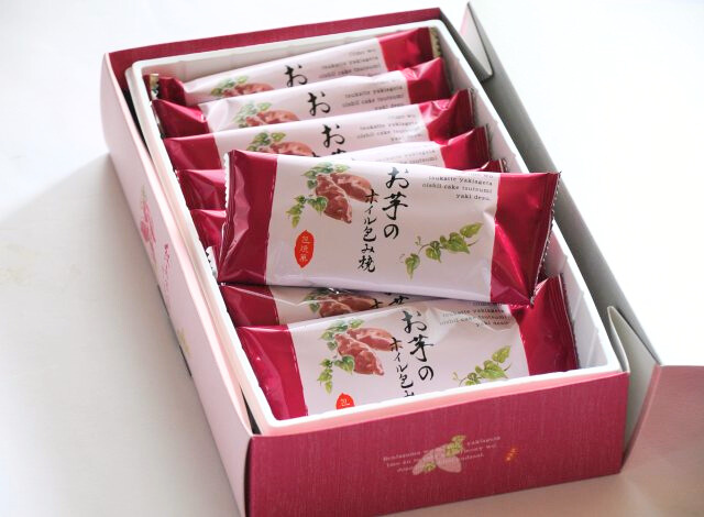 茨城紅あずまホイル包み焼…茨城県産の紅あずまを使って焼き上げた包み焼ケーキです。紅あずまは加熱するとホクホクとした食感になり、やさしい甘みが増すのが特徴で、焼き芋や菓子づくりに向いています。その特徴を生かしてしっとりと仕立てており、程よい甘さで人気の高い商品です。