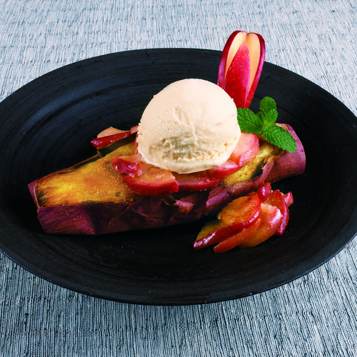 焼き芋バルケッタ 「アイスクリームとキャラメリゼりんご添え」