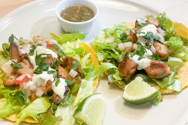 他にもバラエティ豊かなメニューが多数。中でも人気なのが、ビーフ100%パティのハンバーガーや、様々な種類から選べるタコスです。特にハンバーガーのパティに使用する牛肉は、ステーキに使用している肉をお店で挽いて作っています。肉肉しさ満点で食べ応えある逸品です。また、店内黒板にもその時のオススメメニューが書かれているので、ぜひそちらも注目を。