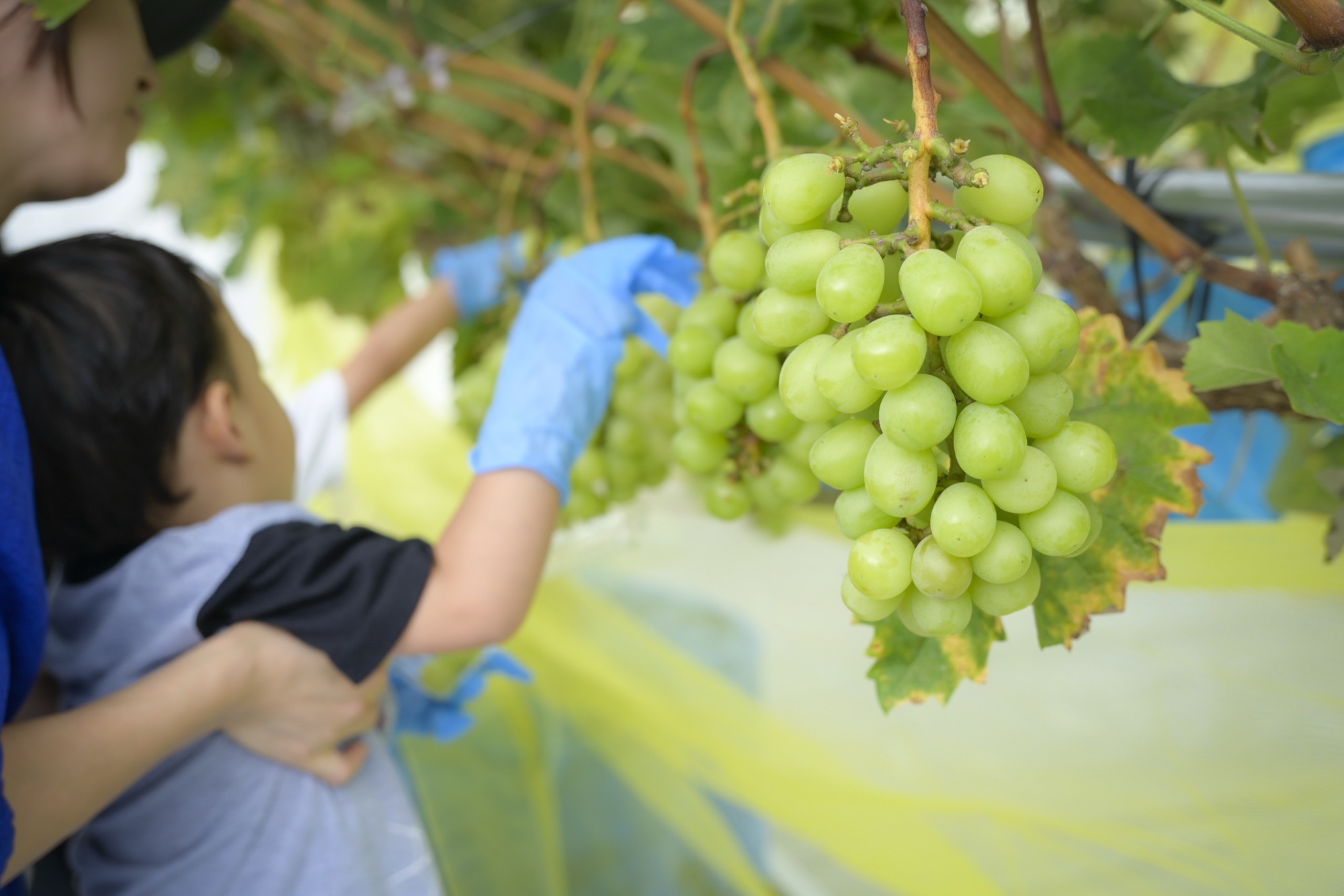 本物のぶどうの樹で収穫体験ができるブースも!