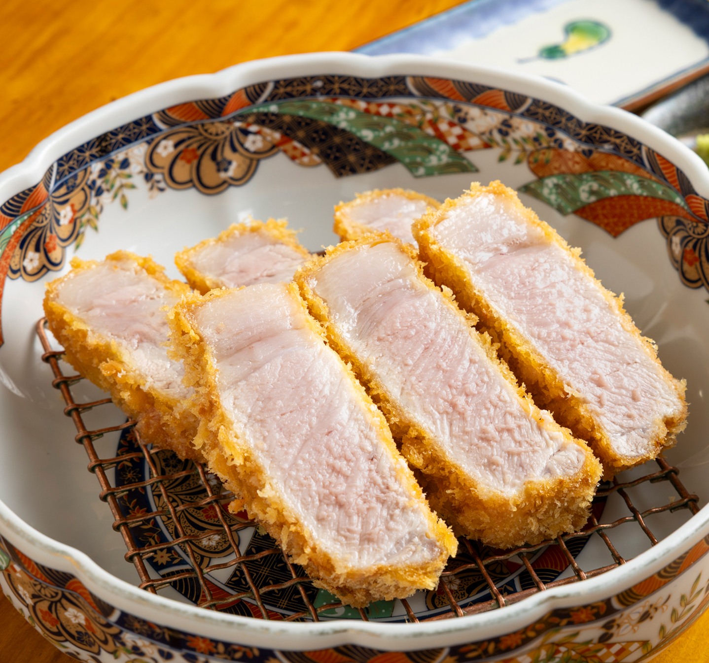数々の豚肉を扱ってきたマスターに、常陸の輝きの魅力を伺うと「とっても美味しい豚肉ですよ。とにかく脂の質が違います!」と太鼓判を捺します。そんな常陸の輝きを使ったロースかつは、まずはシンプルに塩で味わってみてください。とんでは下味をつけずに植物性オイルであっさりと揚げているので、常陸の輝き本来の味わいをダイレクトに感じることが出来ます。常陸の輝き特有の上質な脂は口当たりも良く、さっぱりとした後味で食後の余韻まで幸せになれること間違いなしです。