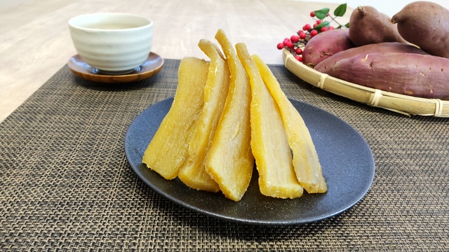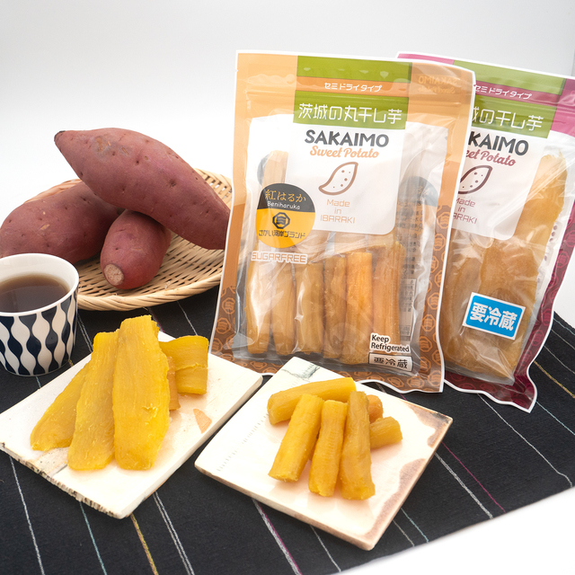 アップサイクルによって生まれた新たな食品素材を「ほしいもピール」と名付け、フレークやパウダー状に加工した商品を半ばおしています。さつまいも皮に含まれる食物繊維、ポリフェノールや抗酸化成分(クロロゲン酸・アントシニアンなど)を逃さず活かしています。「ほしいもピール」は天然の甘みを持ち、加糖・化学添加なしで加工される「100%さつまいも由来」の健康志向の甘未食材であり、フレーク状だけでなく、パウダー状、あるいはそれを使用したクッキーやパウンドケーキなどスイーツに利用しています。こうしたアップサイクルによって、異なる「干しいも」だけでなく、食品ロス削減/サステナブルな農業、そして干しいもの新しい可能性を追求しています。