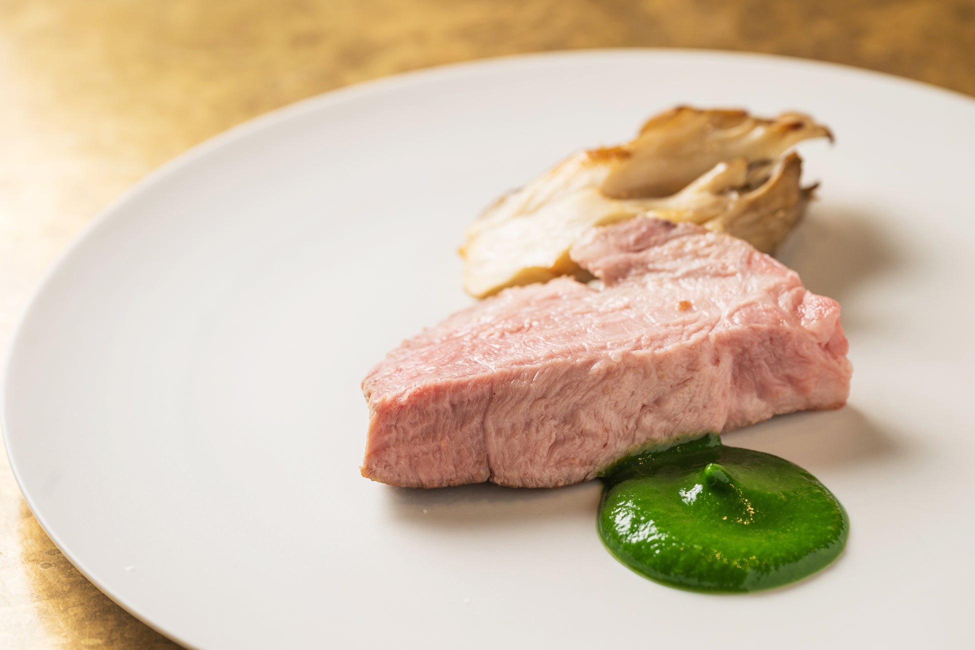 料理:常陸の輝き肩ロースのグリル 黒にんにくソース 3,400円〜3,800円(税込)時価
