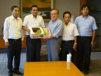 EVENT / 旬のうまいもの特集 新着・イベント情報 茨城県ぶどう連合会が「茨城のぶどう」を県庁でPR(2010/09/03) 8月25日(水曜日)、茨城県ぶどう連合会の深谷会長を始めとする役員4名が県庁を訪れ、これから収穫のピークを迎える「茨城のぶどう」を橋本知事にPRしました。 茨城県のぶどう栽培面積は、278haと全国的には21位ですが、大粒で甘い「巨峰」から、皮ごと食べられ食味の良い「シャインマスカット」に代表される欧州系ぶどうまで、さまざまな品種が県内各地で栽培されています。 今年も甘く美味しいぶどうに仕上がりました。 今、旬を迎えている「茨城のぶどう」をぜひご賞味ください。 【お問い合せ先】 笠間地域農業改良普及センター(茨城県ぶどう連合会窓口) 電話:0296-72-0701 今、おすすめの記事 {{row.type_jp}} {{row.title}}