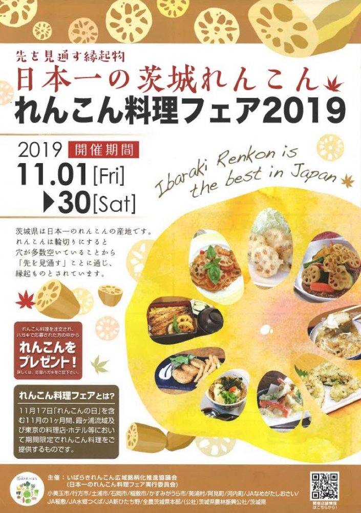 日本一の生産量を誇る茨城県特産の「れんこん」をより美味しく,もっと身近に食べてもらうイベント「れんこん料理フェア2019」が開催されています。