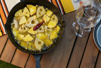 第1弾「ミニトマト&れんこんのアヒージョ」、第2弾「しらす・れんこん・しめじのアヒージョ」に引き続き、今回の第3弾は「れんこん・さつまいものアヒージョ」!