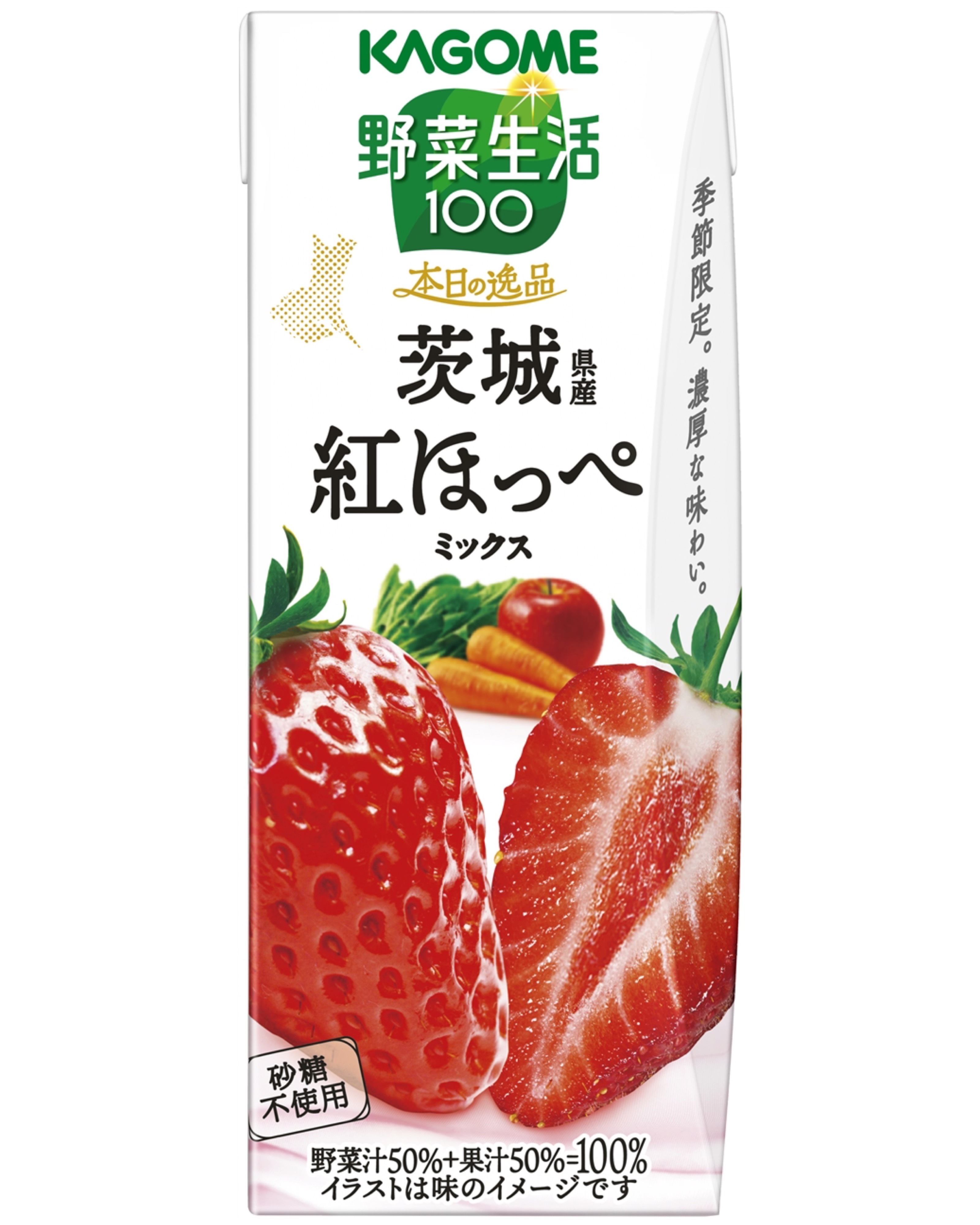 2025年11月25日(火)から2026年3月上旬まで、カゴメ「野菜生活100 本日の逸品」シリーズより、茨城県産いちご『紅ほっぺ』を使用した「野菜生活100 本日の逸品 茨城県産紅ほっぺミックス」が全国で販売されます。