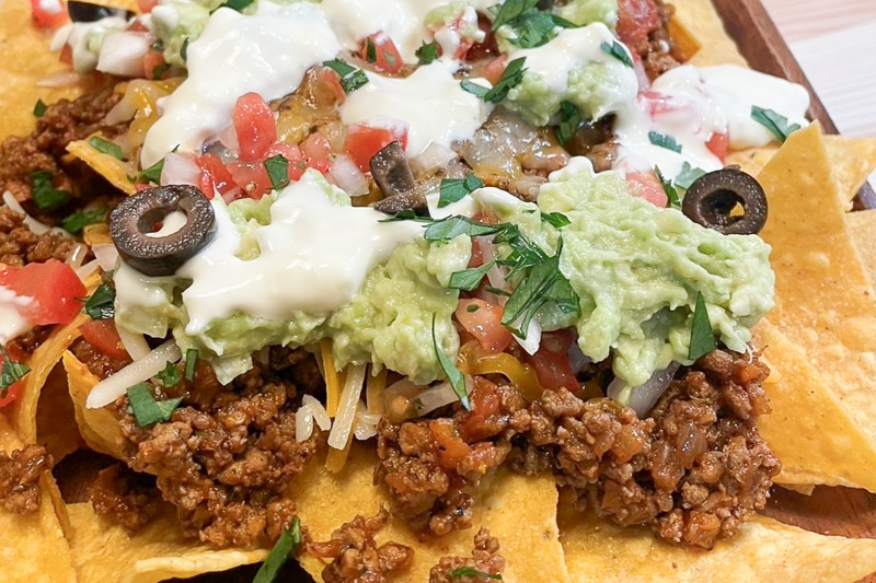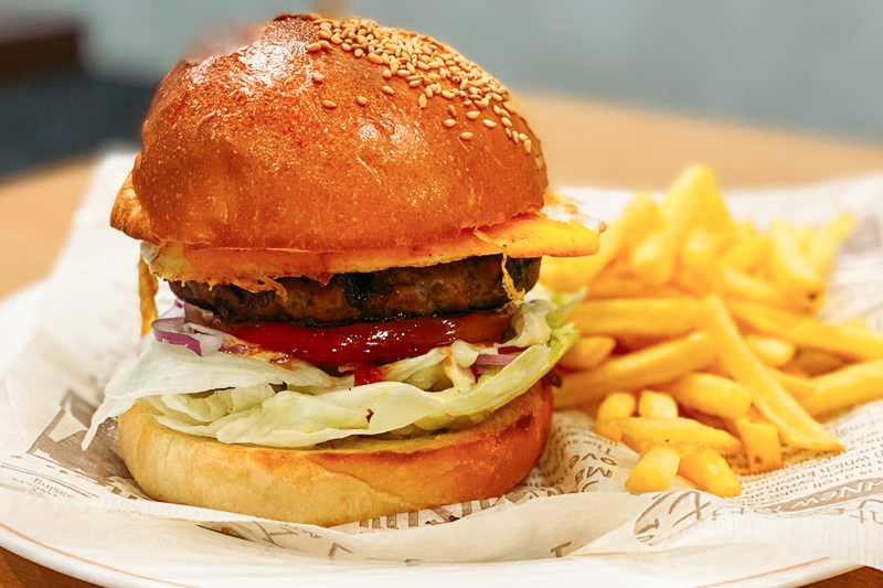 他にもバラエティ豊かなメニューが多数。中でも人気なのが、ビーフ100%パティのハンバーガーや、様々な種類から選べるタコスです。特にハンバーガーのパティに使用する牛肉は、ステーキに使用している肉をお店で挽いて作っています。肉肉しさ満点で食べ応えある逸品です。また、店内黒板にもその時のオススメメニューが書かれているので、ぜひそちらも注目を。
