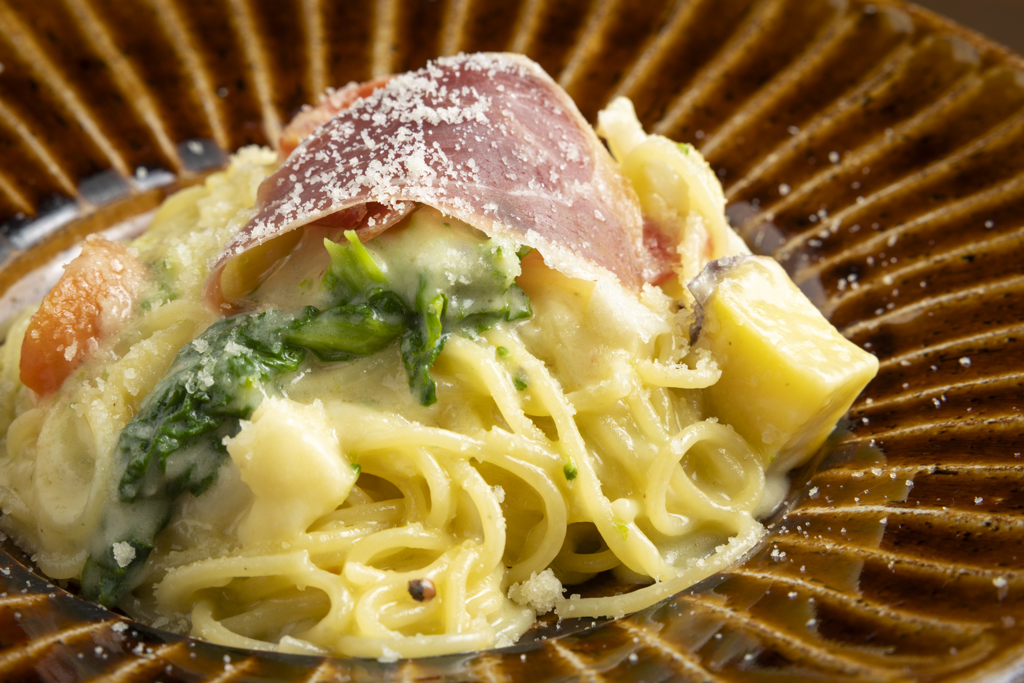 普段なら細かくカットしてソースに合わせるイタリアンにも関わらず、野菜の食感や風味を最大限引き出すカットや調理方法でその美味しさをひと皿に体現。雰囲気はもちろん、その本物の味わいに感動すること間違いなしです。