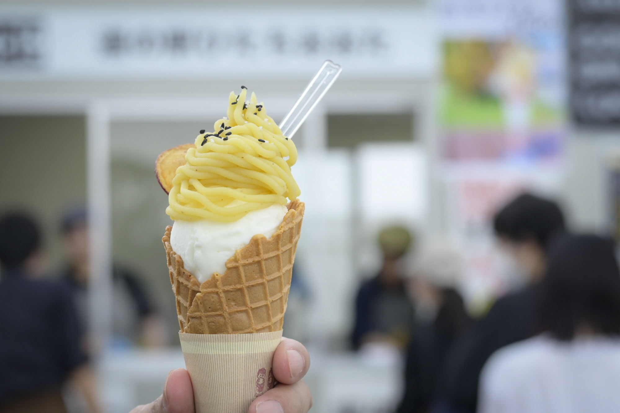 地元の生乳を使用したフレッシュなミルクジェラートに、おいものクリームがたっぷり。