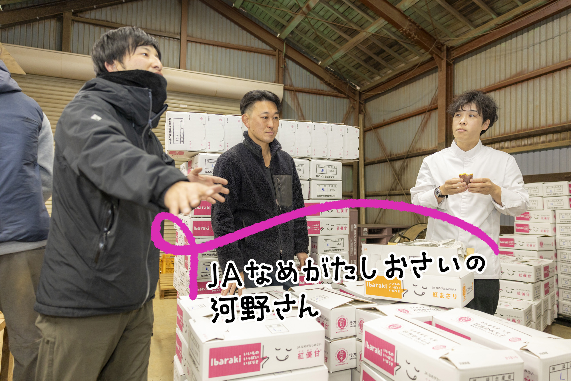 届けてくれたのは、JAなめがたしおさい・なめがた地域センターの河野さん。紅優甘からバトンタッチし、2月11日から出荷がスタートした「紅まさり」の焼き芋です。