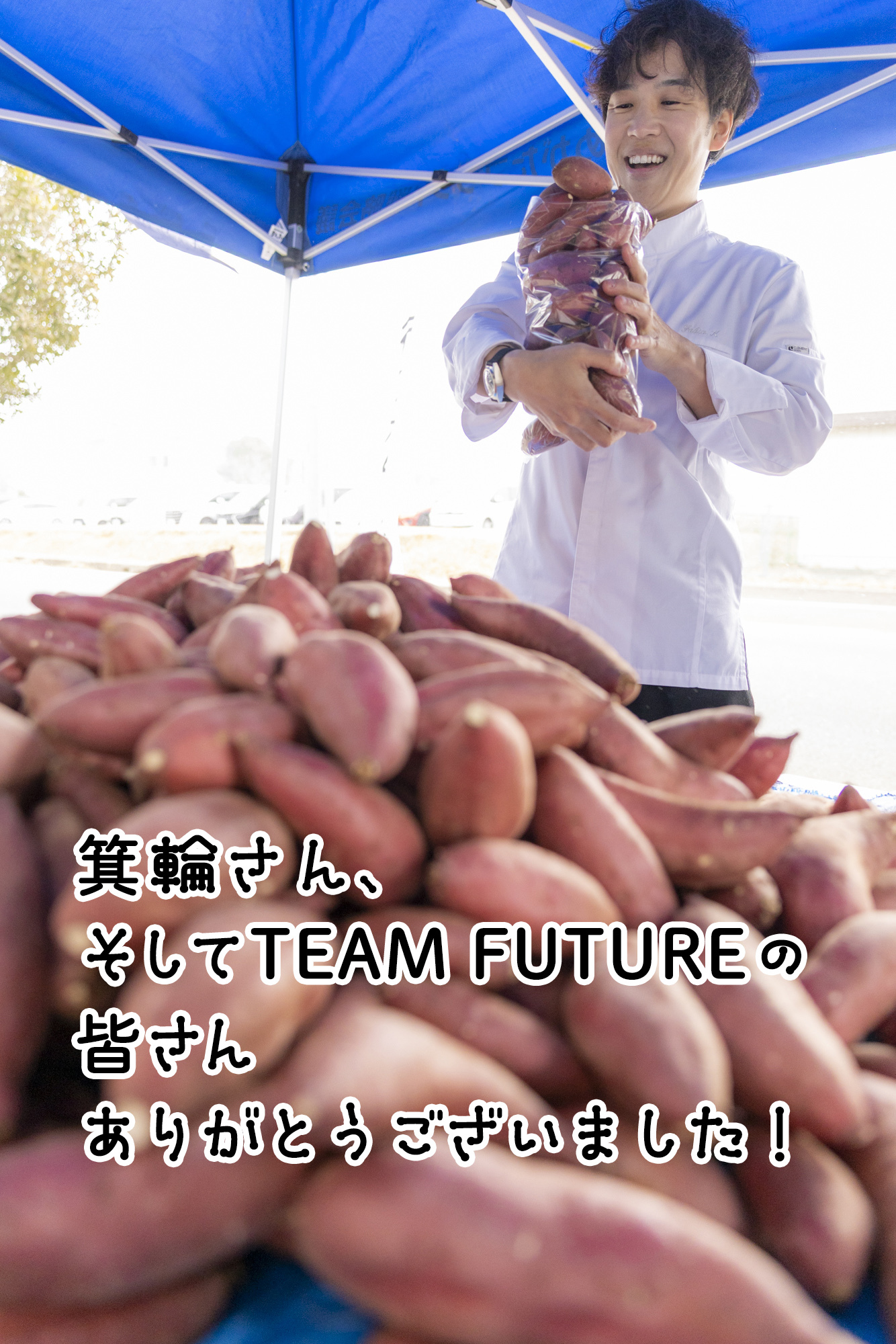 「TEAM FUTURE」とは、同部会の若手生産者が集う組織。シェフとともに箕輪さんの作業場を訪ねると、収穫されたさつまいもの選別作業の真っ最中でした。